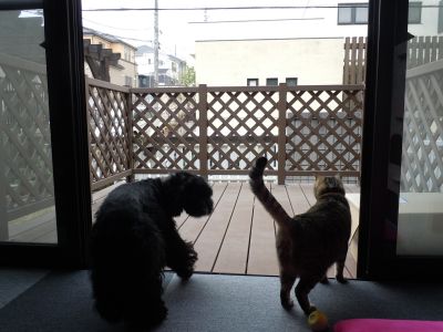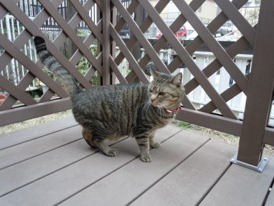 庭に出ることなく、デッキの上を優雅に歩くたいっちゃ~~んv(*^^*)v