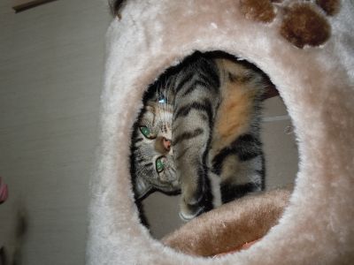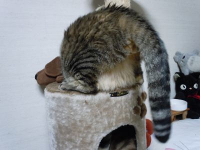 夜中にひとりで大運動会をしてるかと思ったら、今度はキャットタワーと戯れてた・・・(;^_^A