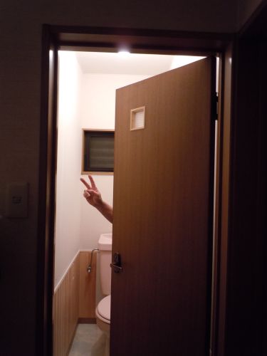 まぁ確かに苦労はしたけど、この壁紙とパネリングの組み合わせが想像以上に良くて、何度も何度もトイレに見学に行ってるの~~~~(*⌒ー⌒*)