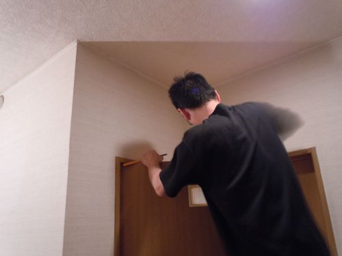 ノリの付け忘れ箇所は壁紙が浮いてるし・・・(;^_^A