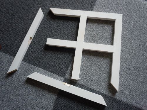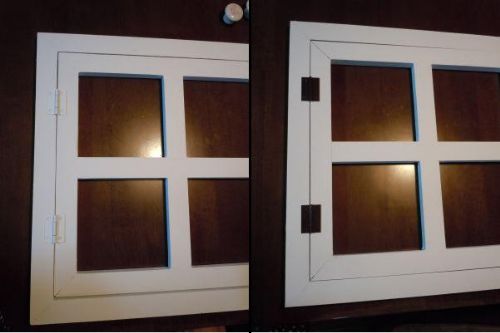だ~が帰ってきたから、何事もなかったかのように修理してペイントした窓枠を見せ、白とブロンズどっちの蝶番がいいか聞いてみた