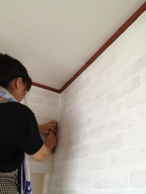 あたしが行った時には、既に壁紙が全部剥がしてあったから、あとは張るだけ~v(*^^*)v