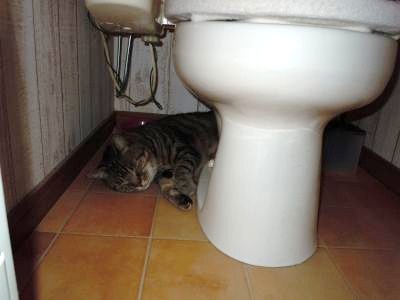 水を流したら足に何かが触れてめっちゃビックリしたんだけど、どうやらたいしったらトイレの奥もお気に入りみた~い(^_^;