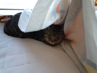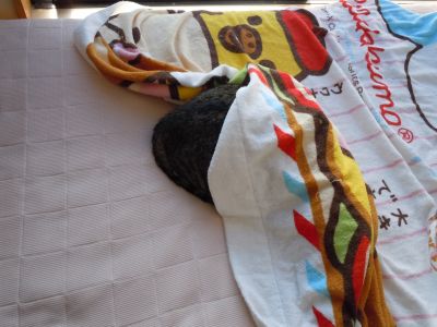 布団に潜り込んでたら解らないんだろ~けど、タオルケットだからバッチリ丸まってるのが解るでしょ?