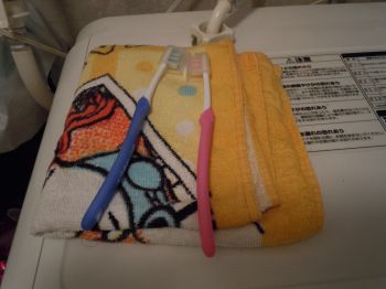 仲良く向かい合ってる歯ブラシ・・・(;^_^A