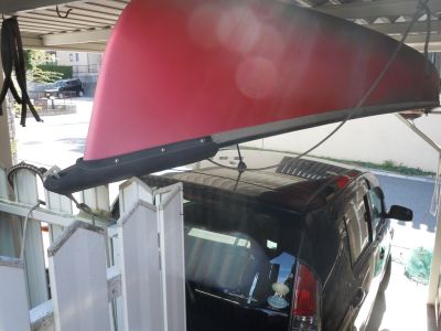 ちょうどカヌーの端がフェンスの上に引っかかってたから落ちては来なかったけど、そうじゃなきゃあたしの車が下敷きになってたよ・・・( ̄ロ ̄|||
