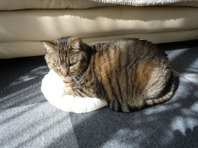 これまたゆきちも日向ぼっこしてるのはいいけど、何故に君たちはわざわざソファーからクッションを落として乗っかってるんだい?(;^_^A
