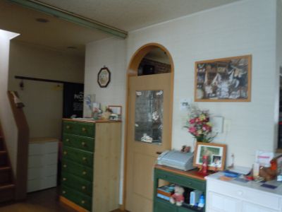 ちょうど写真で見えてる部分の壁紙を全部張り変えるコトにしたから、グリーンのチェストが邪魔だわ