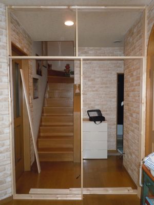 あとはこの右側に、キッチンとの仕切りに付けたドアを外して付け変えたら、とりあえず寒さ対策は完了だよ~♪
