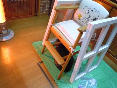 これを繰り返して二度塗りが終わり、椅子に立てかけて乾かしていたら・・・・