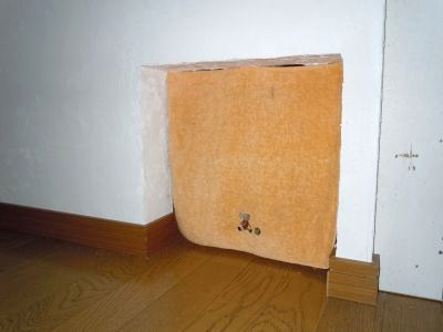 床に接してる部分の漆喰がポロポロ落ちて来るから、リビングの壁とお揃いの巾木を付けてみたの~ヽ(*^◇^*)ノ