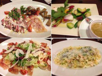 オードブル・バーニャカウダ・生ハムとホタテのシーザーサラダ・牡蠣と海老とキャベツのクリームパスタ