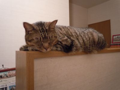うん、見てる方はかなり怖いんだけど、当の本猫は普通に移動したり寝方を変えたりしてたよ
