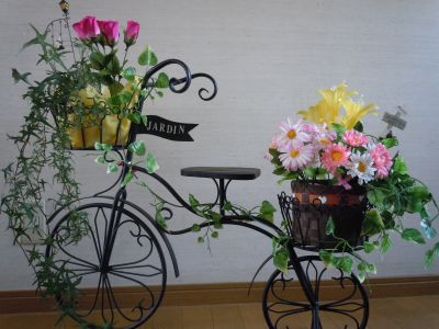 何度買い替えても枯れちゃう生花は諦め、100均で造花を買ってきたから、今年の誕生日に母に買ってもらったフラワースタンドを造花で飾るためのカゴを作ってみたv(-^.^-)v