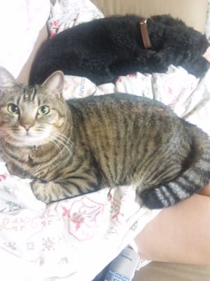 2匹がかりで乗っかってくれてるから、身動きもとれやしないよ・・・