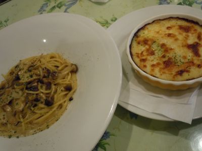 期間限定のきのこのクリームパスタとズワイガニのドリア