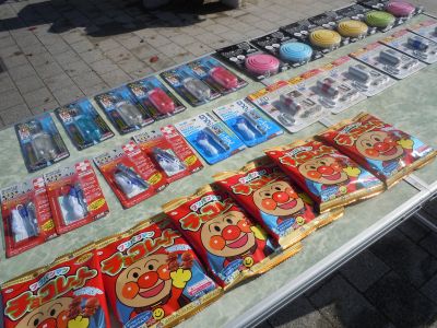 賞品はAEDライト、IDカード付きホイッスル、ライト付きライター、組み立て式コップに非常食の(笑)アンパンマンチョコレート