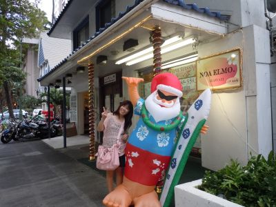 クリスマスなんでアラモアナショッピングセンターのサンタさんでご挨拶♪