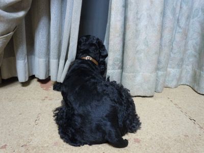 すももはゆきちみたいにカーテンから顔出して外見てるよ(^◇^)