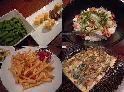 枝豆・出汁巻き卵・韓国冷麺サラダ・スパイシーポテト・海鮮チヂミ