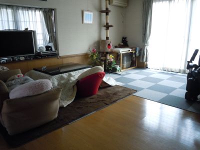我が家のリビングの窓際、昼間は陽がサンサンと降り注いで暖かそうなんだけど、この時期フローリングがイマイチかなぁ~と、大特価になってた50㎝角のパーツカーペットを購入し敷いてみることに