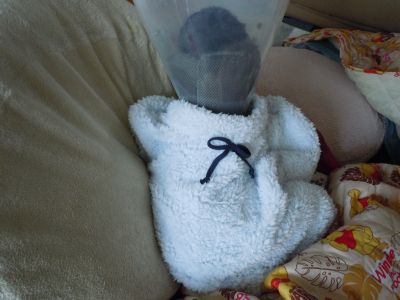 ちょっと背の部分が大き過ぎたけど、毛布を着てるみたいで『あったかかわいい』からよしとしよう(V^-°)
