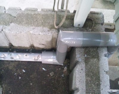 その間にホームセンターで塩ビ用接着剤を買ってきて、とりあえず外れてたパイプを接着してみた
