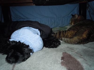 カラーをつけて目を保護したからと言って、よくなるとも思えないし、擦ってるふうでもないから、好きなようにさせてるの